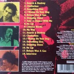A Matrix: 1. Search & destroy 2. Chatterbox 3. Something Else 4. I Wanna Be Your Dog 5. Belsen Was A Gas 6. Stepping Stone 7. Take A Chance On Me 8. No Lip 9. Chinese Rocks 10. My way 11. Search & Destroy 12. Chatterbox 13. I Wanna Be Your Dog 14. Something Else 15. Stepping Stone 16. No Lip 17. Belsen Was A Gas 18. Interview |