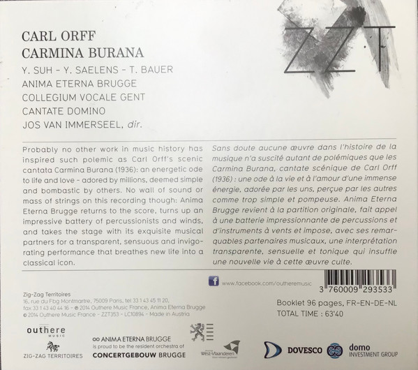 | Artists: | Carl Orff / Yeree Suh / Yves Saelens / Thomas E. Bauer / Anima Eterna / Collegium Vocale / Schola Cantorum Cantate Domino / Jos van Immerseel |