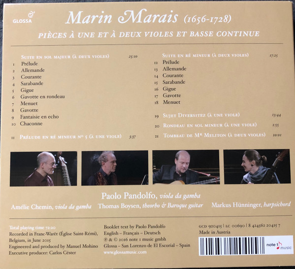 Artists: | Marin Marais / Paolo Pandolfo / Amélie Chemin / Thomas Boysen / Markus Hünninger |