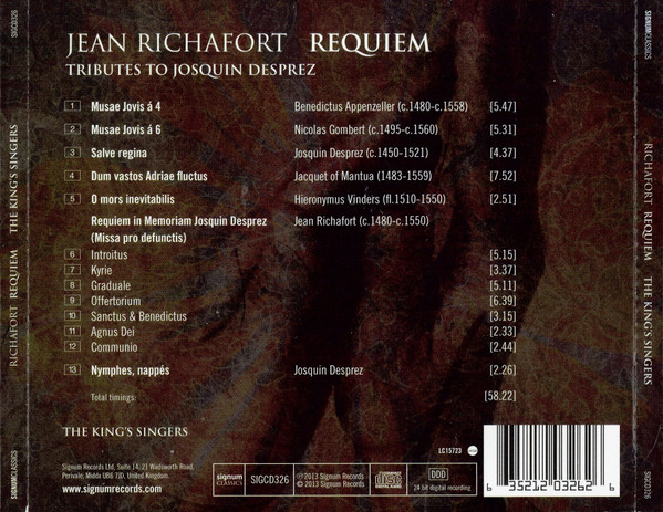 | Artists: | Jean Richafort / Benedictus Appenzeller / Nicolas Gombert / Josquin Desprez / Jacquet of Mantua / Hieronymus Vinders / The King's Singers |
